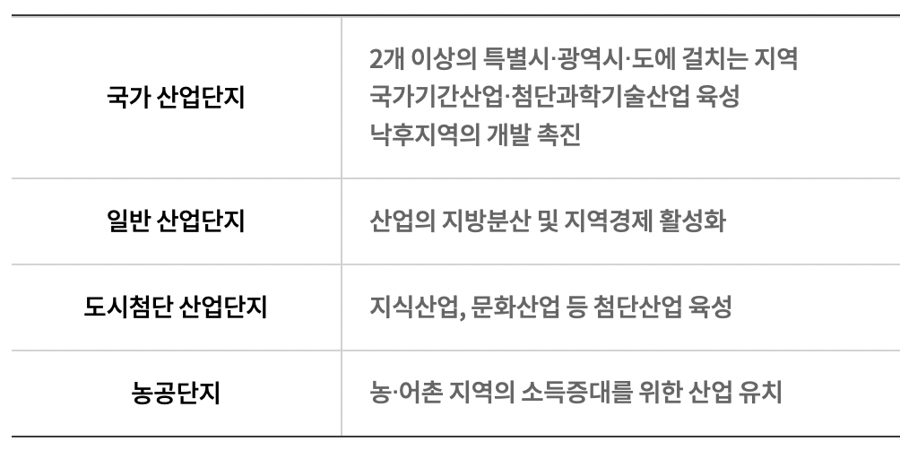 분석을 진행하기에 앞서서 우리나라의 산업단지 분류 방법에 대해 알아보겠습니다. 우리나라의 산업단지 분류는 4가지로 나뉩니다.